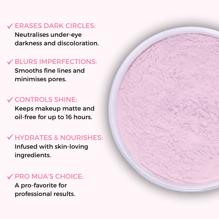 Brighten + blur with a soft-focus, oil-absorbing translucent viral pink setting powder.